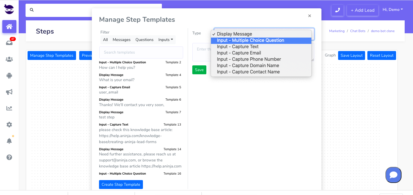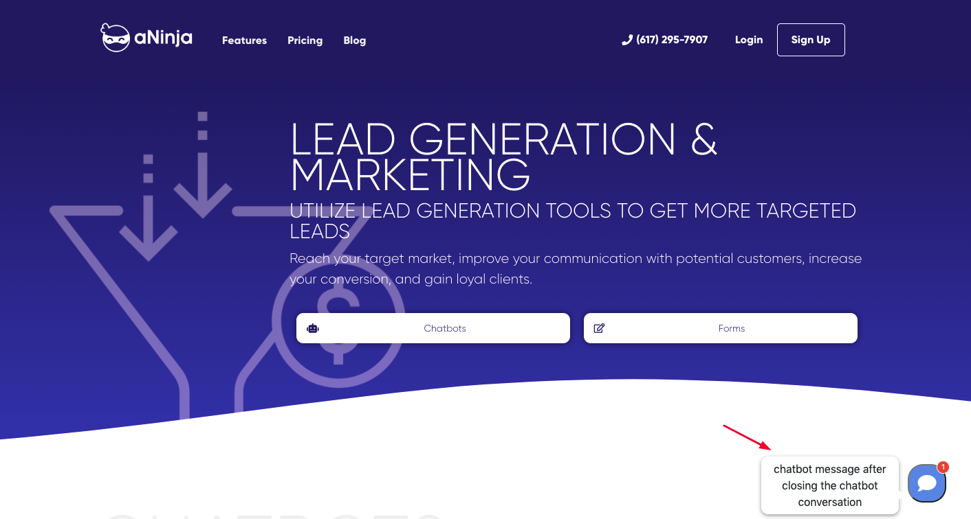 A Chatbot is a live chat program that you can embed on your website. It answers the website visitor’s simple questions. A lead is added to your aNinja account with every chatbot conversation.