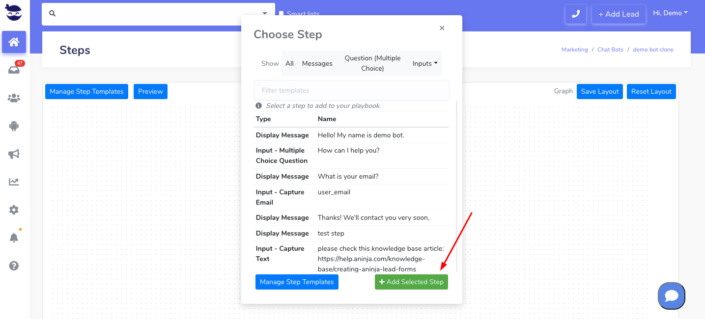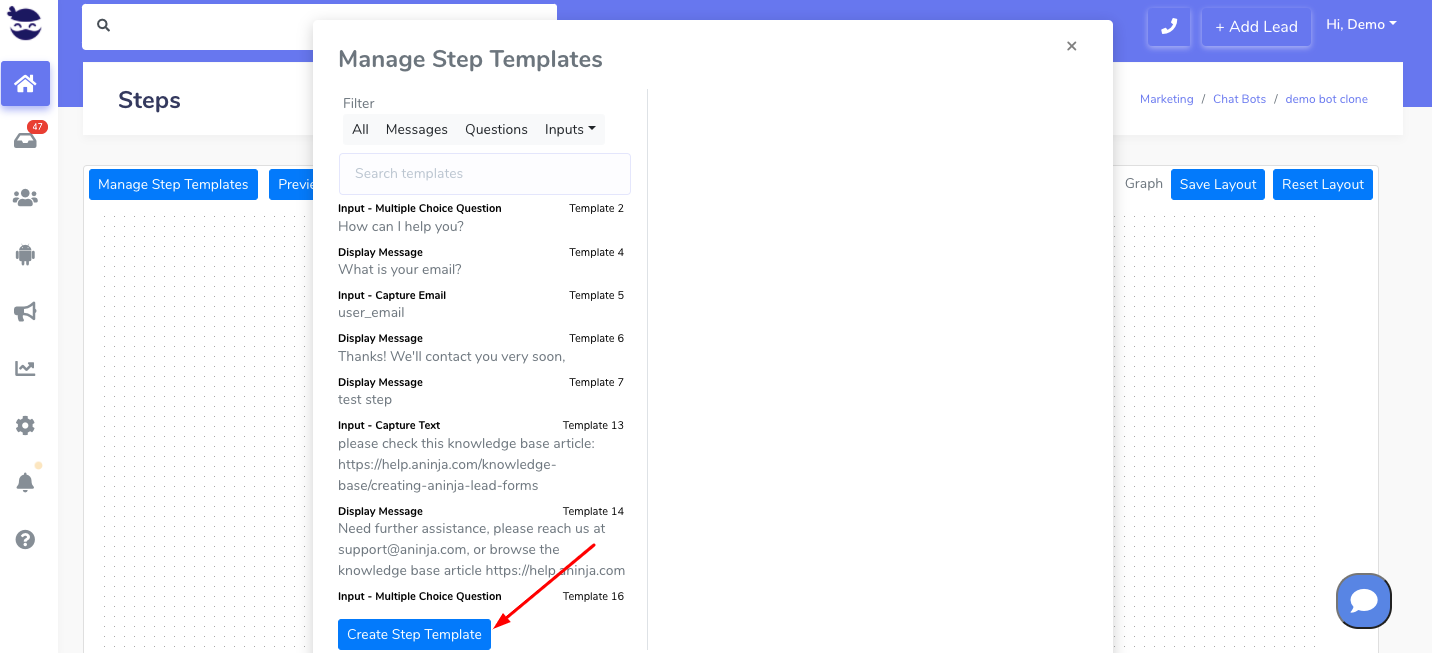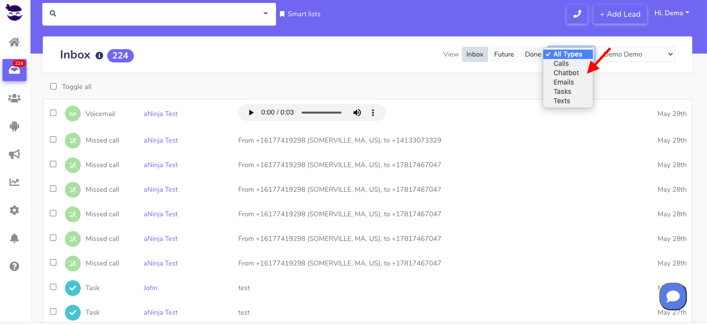 After adding the Chatbot that you created in aNinja to your website, as a result, after every chatbot conversation, a new lead is created into your aNinja account with the info captured in the conversation.