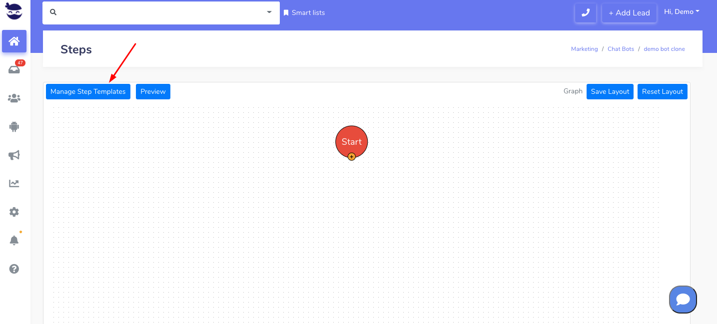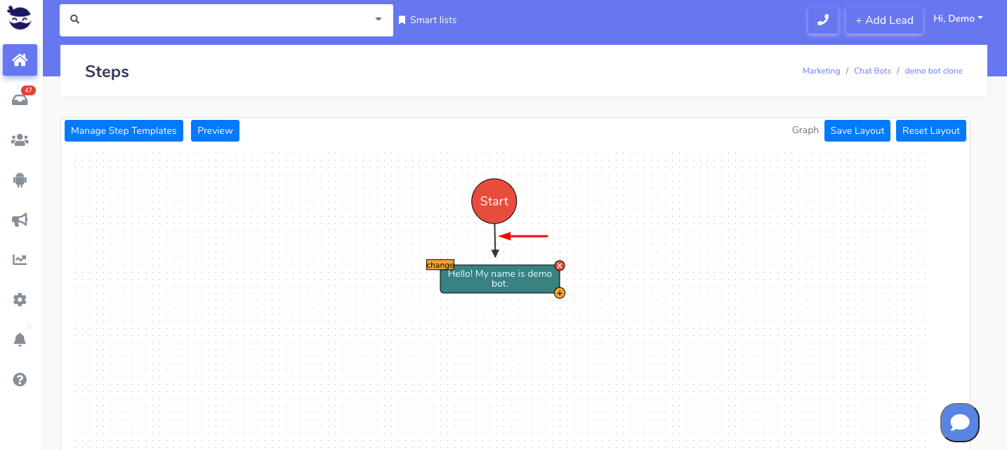 - If a step is deleted, the steps linked to it will remain in the graph. You can either link them to any step in the layout or delete them.
