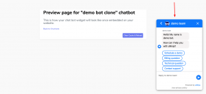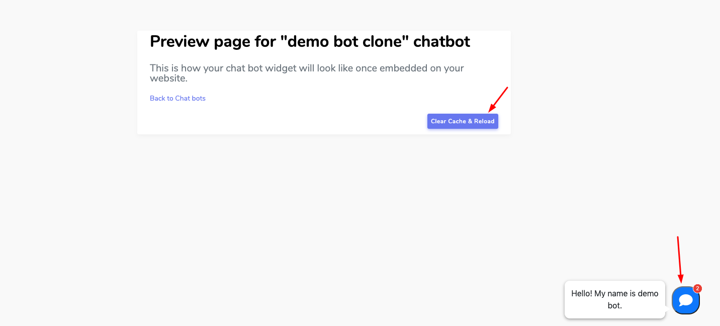 - It will open a new page. Click on “clear cache and reload” to reset the chatbot in case you have tested it before.