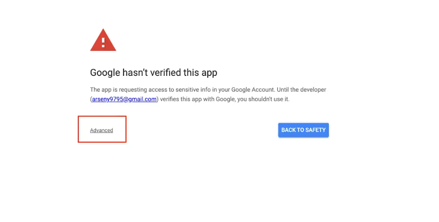 - Click on the link or button that appears after expanding Advanced options to proceed.