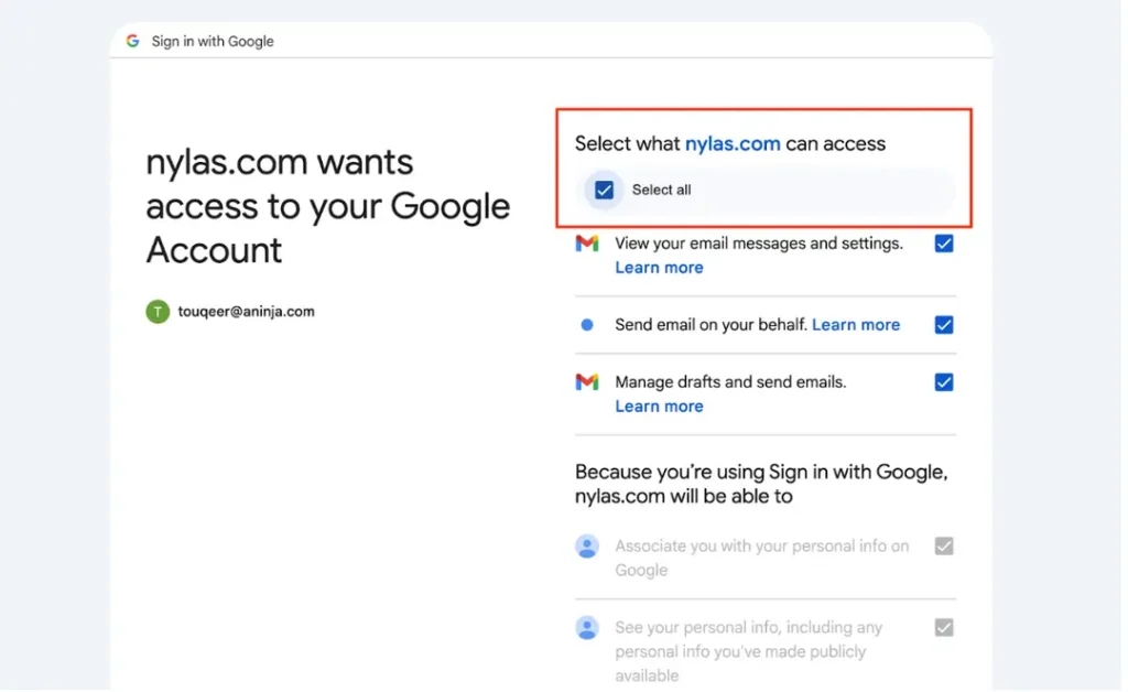 - Check Select All options to grant all necessary permissions.