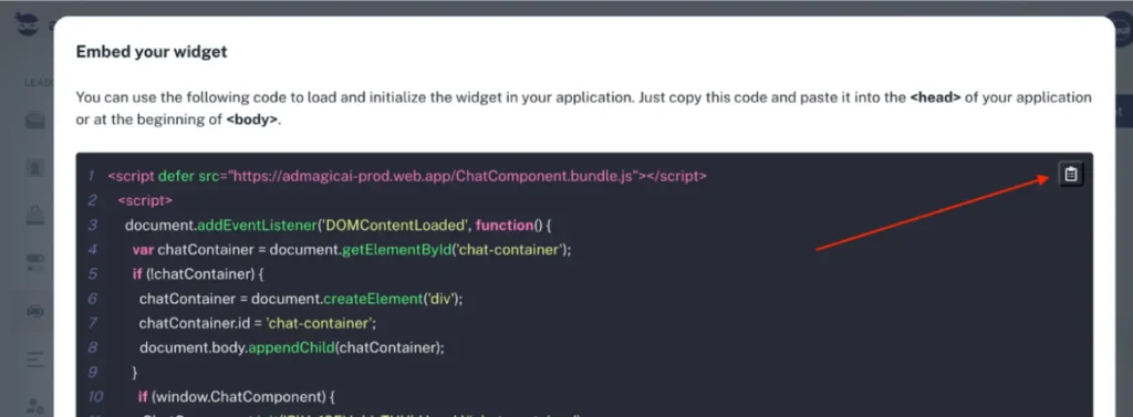 Step 7: Copy Your Chatbot Snippet from aNinja