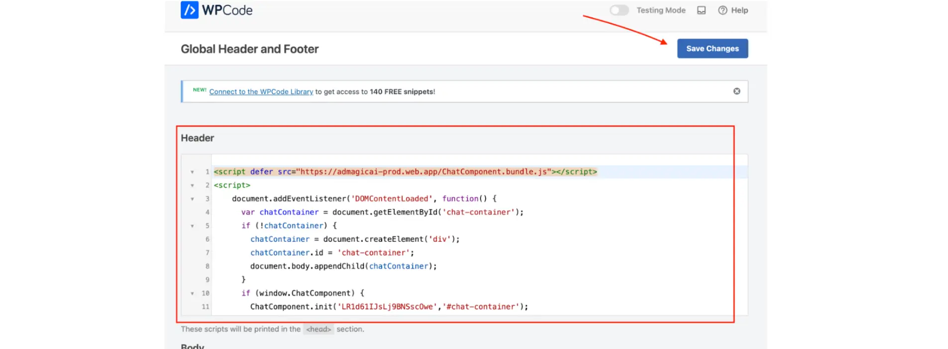 Step 8: Add Your Snippet in the Header Section