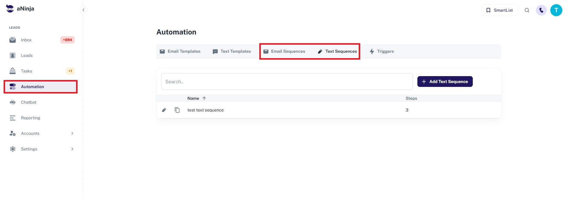 Launching text sequences means sending automated, pre-scheduled text messages to one or more leads using aNinja’s text automation system. These messages use pre-written text templates organized into sequences.