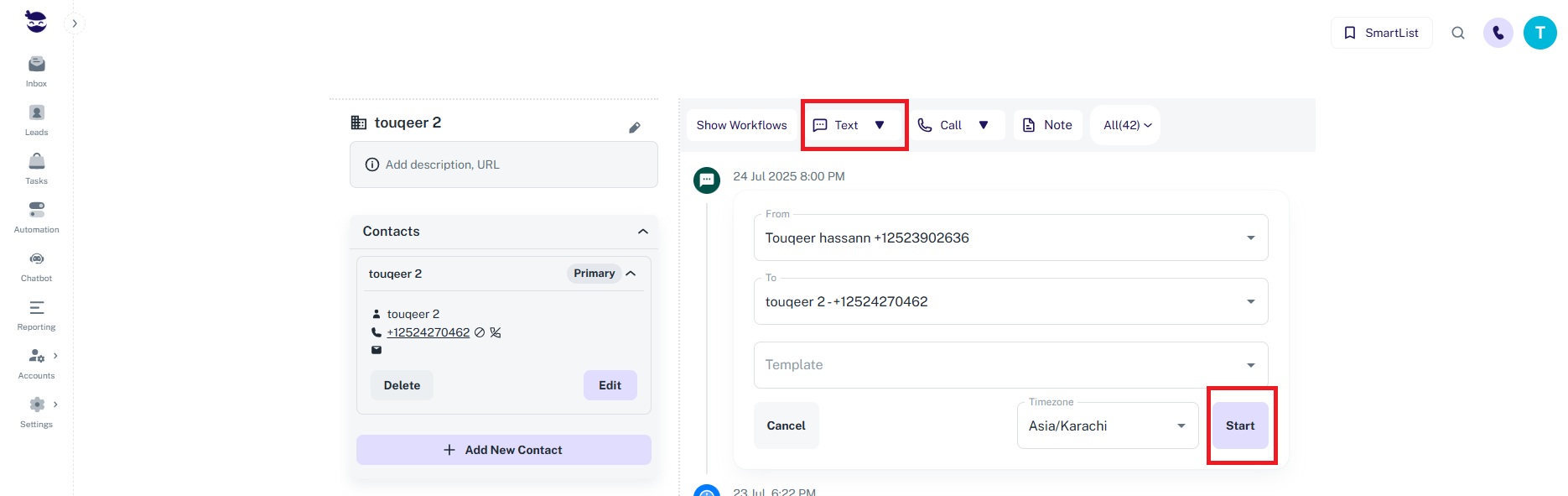 You can launch a text sequence to a single lead, a group of leads, or all leads at once.